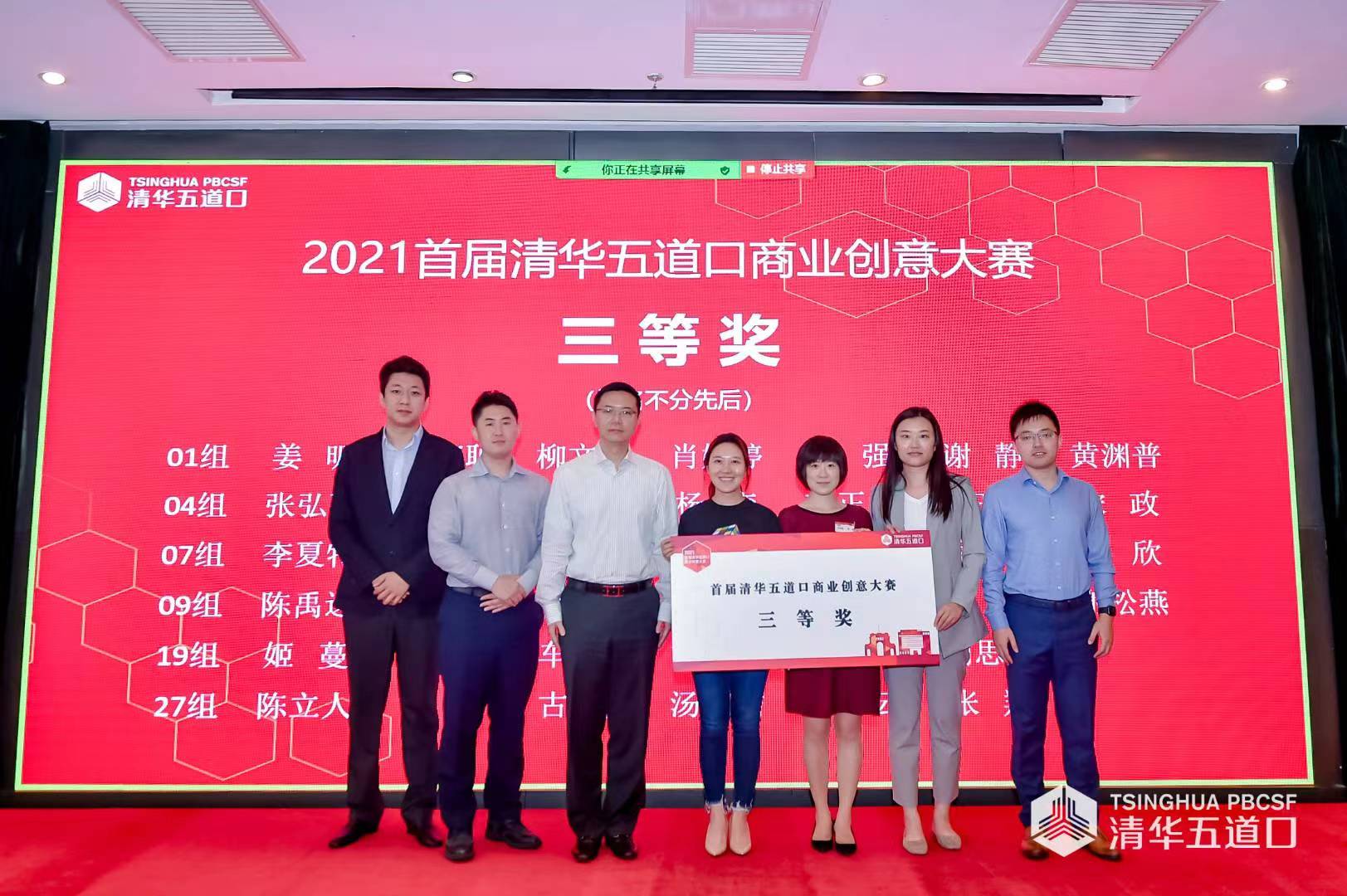 图为田轩教授为商业创意大赛中获奖同学颁奖