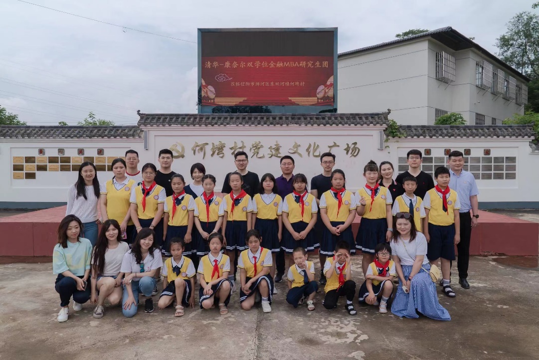 2021年7月,在河南省信阳市何湾村与“爱心学堂”孩子们合影