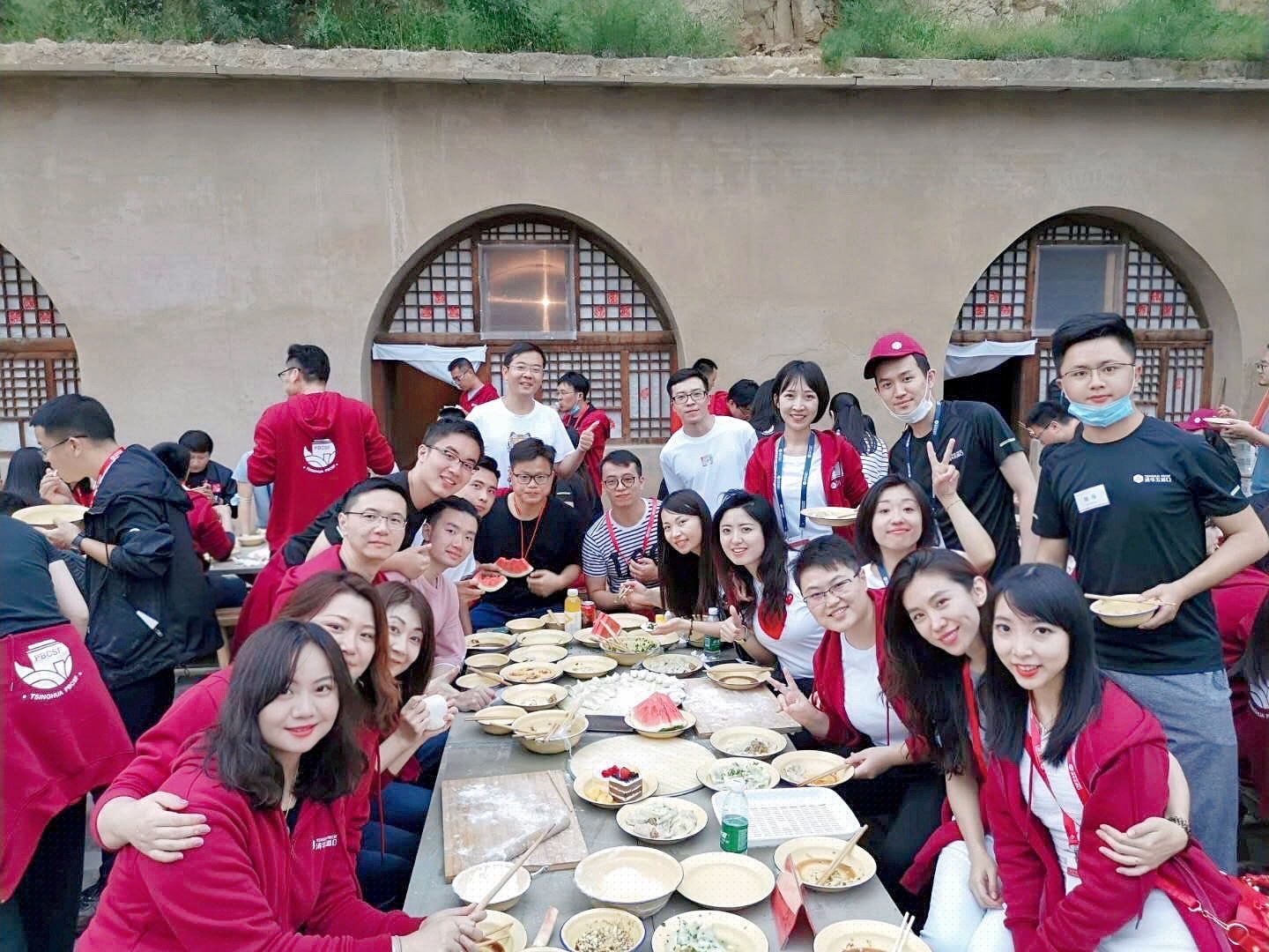 我们开学相识于延安,生篝火住窑洞;再到上海,听论坛逛外滩;又到苏州,观流水鉴香茗;来到泸州,看地产品佳酿;共赴成都,游天府看熊猫;再去内蒙,登火山住营地;远赴???,访企业吃海鲜;奔赴文昌,现场观看火箭升空;以及每年雪季必去的崇礼*N+1次,滑雪美酒火锅温泉。