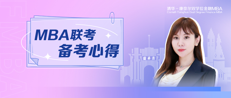 近期,我们邀请了清华-康奈尔双学位金融MBA2023级学长学姐为大家带来联考备考心得,帮助大家顺利通过联考!本期分享来自于2023级联考成绩优异者芦嘉馨,希望对大家的复习备考有帮助,一起来看看吧!