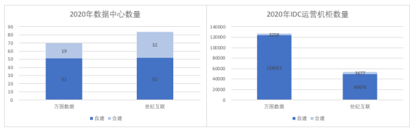 图11 万国数据和世纪互联2020年数据中心数量和IDC运营机数量