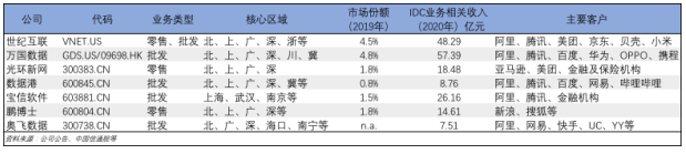 根据证券化的基本理念,REITs作为一类特殊的证券化资产,在基础资产从原业主的控制下剥离后其后续的回报能力依然非常依赖于运营管理。在我国REITs仍然是契约式基金而不是公司模式的情况,原业主也自然成为了REITs资产的运营方。以下六家已上市的IDC企业因此也是我们评估此类资产未来运营质量的对象。