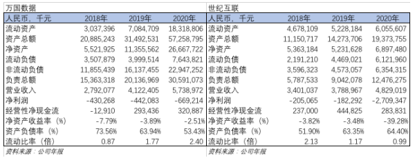 图15 万国数据和世纪互联2018-2020年主要财务状况
