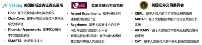 人工智能在监管科技和合规科技应用场景广泛,数据收集基于大数据技术,而数据分析则基于人工智能技术,具体应用包括市场操作及内幕交易、反洗钱、反欺诈、风险控制、流动性风险分析及管理等方面。目前英美已在监管领域开展ABCD技术的综合应用(图9),这类实践对我国的相关部门的技术发展有一定的启示作用。