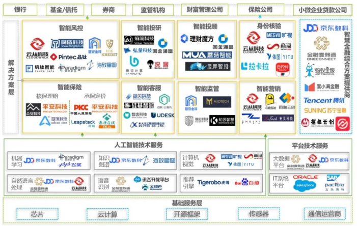 AI技术在金融服务场景中呈现广泛的运用,相关的业务领域正如火如荼地发展当中。业内根据人工智能生态中不同企业提供的技术、产品与服务的差异
