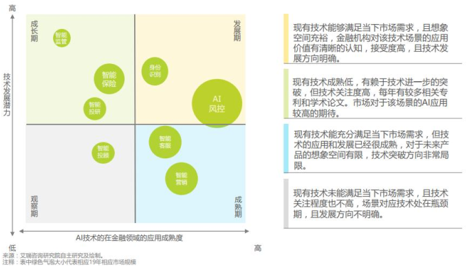 根据艾瑞咨询研究院发布的《2020中国AI+金融行业发展研究报告》,前述AI在不同金融场景的应用中,最具价值的应用场景为智能风控,而最具潜力的是智能监管