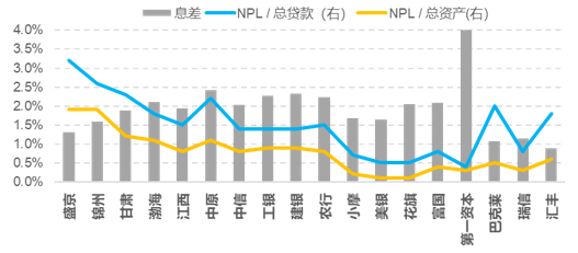考虑到城商行明显较高的融资成本,该图反映出了城商行为了弥补自身资源的溃泛,从而不得不参与更多高风险项目放贷的窘况。