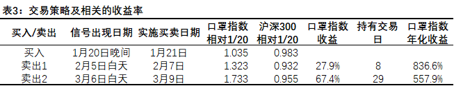 事实上,在上述统计意义上具有显著的超额收益的区间内,口罩指数相对于沪深300的累计涨幅正好处于阶段性高点,而沪深300累计涨幅基本上处于0%以下,如图1所示: