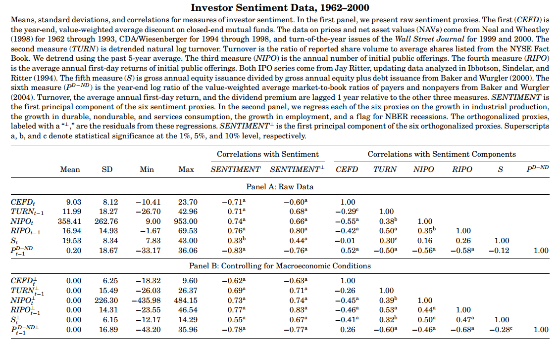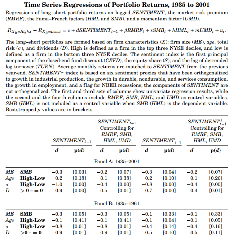 图4 1963-2000市场情绪时间序列回归分析表[11]