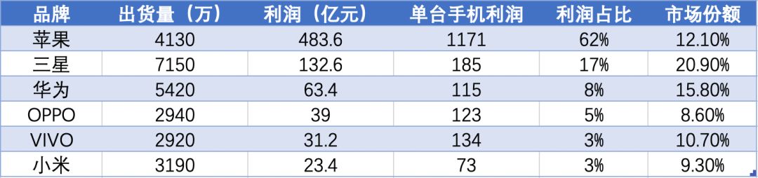 然而更重要的是,对比2016-2018年Q2季度公布的全球各大手机厂商毛利率水平[6],苹果以62%稳居第一,并帮助它获得了12%的市场份额。而第二名三星和第三名华为,其毛利水平仅为17%和8%。