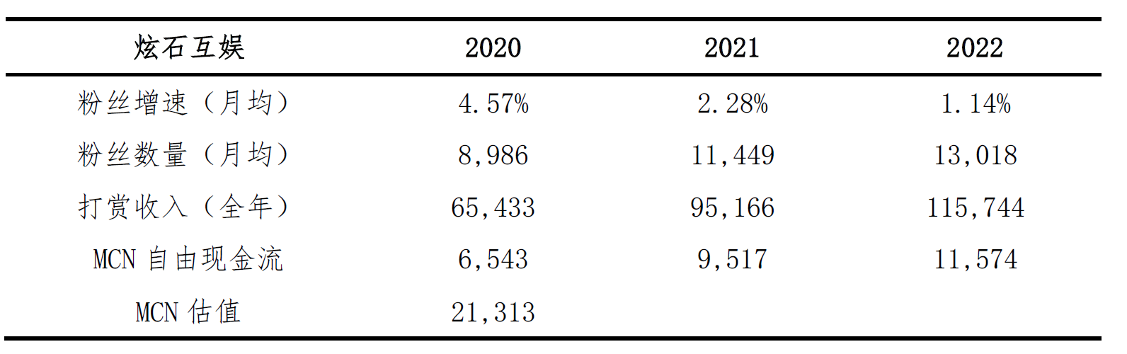 图表9  内容分享模式MCN炫石互娱的估值结果