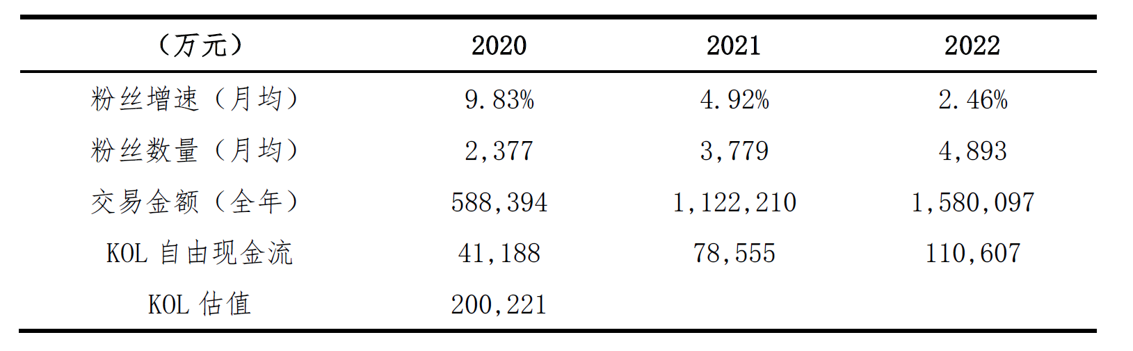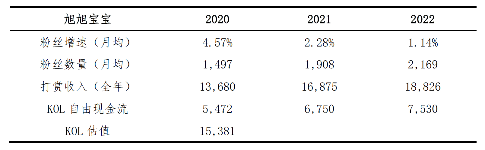 图表8  内容分享模式KOL旭旭宝宝的估值结果