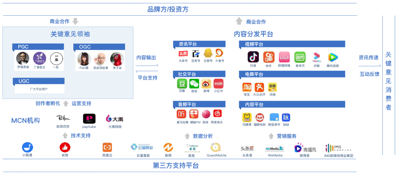 MCN作为连接网红经济产业链各方的中心枢纽发挥着重要的作用:对内容方,MCN可以洞察用户的需求从而针对性地生产内容,提供专业创作的技术支持,并为其开拓商业变现之路;对于平台方,MCN可以提升平台的内容质量,协助其实现低成本的高效运营;对于品牌方,MCN可以提升广告投放的效果,实现平台方与内容方的整合营销。