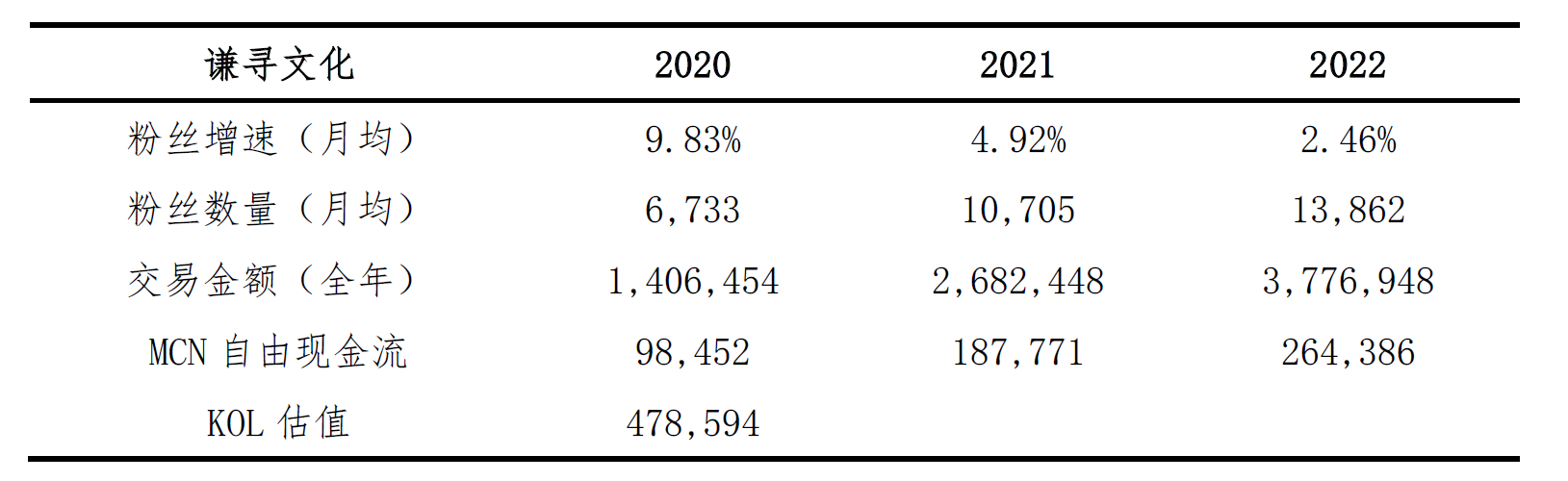 通过网红电商模式MCN的估值模型,可以得到谦寻文化的估值为47.86亿元。
