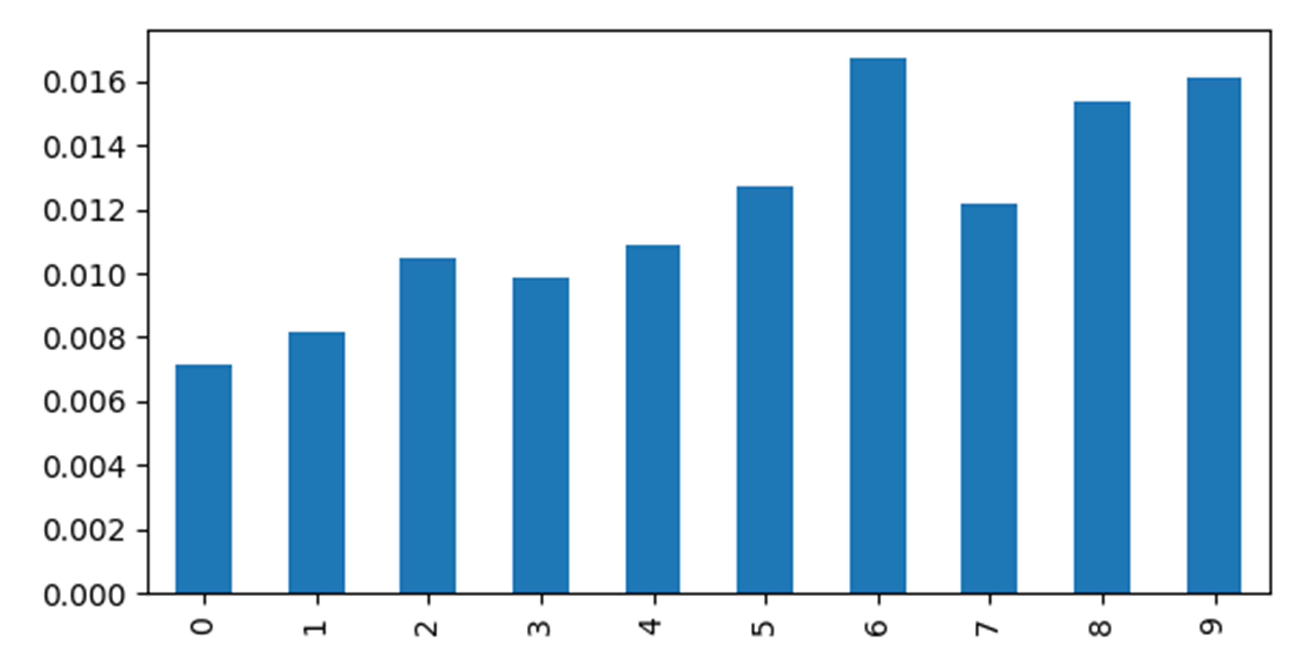 最后, 10组的月均收益率与SUE变量的秩相关系数为 0.89,p值为 .0005,表现出统计上显著的单调性(下图)。