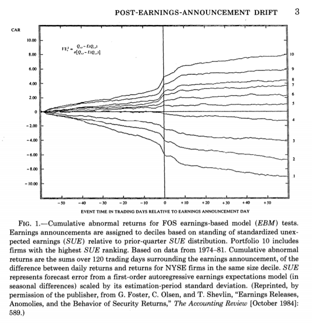 2.Bernard, B. L. and J. K. Thomas (1989). Post-earnings-announcement drift: Delayed price response or risk premium? Journal of Accounting Research 27, 1 – 36.