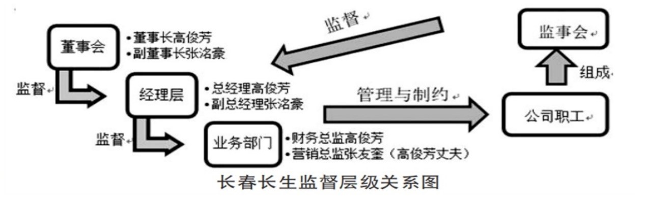 其次,由上面的长生生物监督层级关系图可以看出,公司的治理结构使得董事会、监事会难以发挥有效的作用。长生生物的法定代表人高俊芳一人担任董事长、总经理、财务总监三个角色,其子张洺豪任副董事长、副总经理,丈夫张友奎担任营销总监,这样的人事安排使得董事会对管理层的监督几乎无法进行,为公司埋下了“暴雷”的隐患。