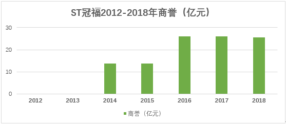 ST冠福也不例外,在第二节中所提到的一系列并购过程中也逐渐积累了超过26亿元的商誉,占其2018年末总资产75亿元的约三分之一(见图3),占2018期末净资产超过100%,其高商誉率令人乍舌。在2018年的业绩快报中,ST冠福提到,由于被投资公司商誉减值将对2018年业绩亏损约3亿元,最终经过会计师事务所审计及评估事务所评估,2018年全年实际计提了能特科技6,000万元的商誉减值损失。