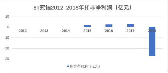 图 1 ST冠福2012-2018年扣非净利润(亿元)