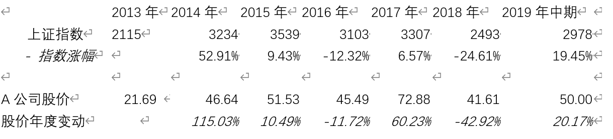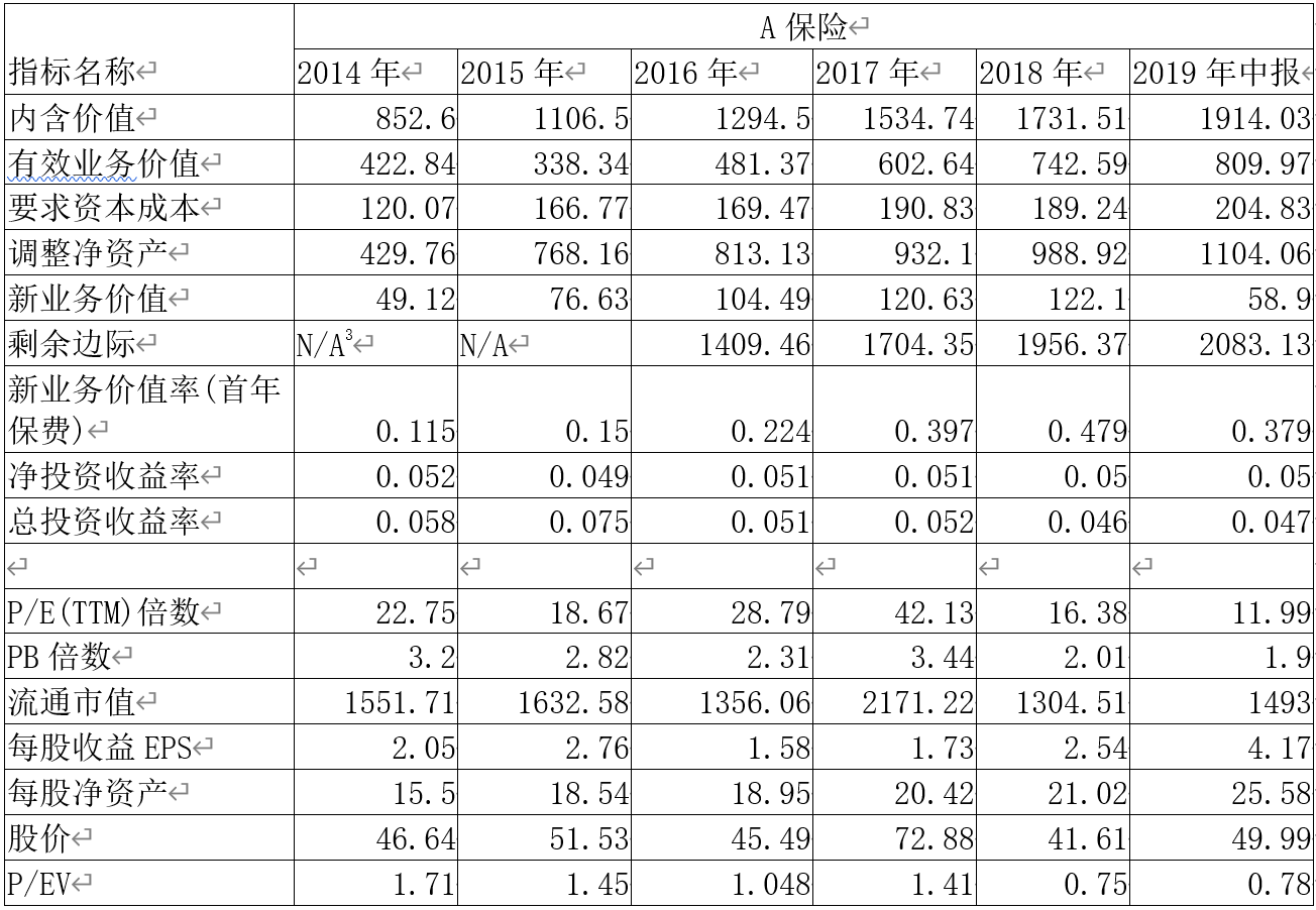 目前A股市场上市的保险公司包括中国人寿、中国平安等,其中中国平安、中国太保等公司的上市主体下还包括了财产险业务及其他相关业务。为简化分析,选取专营人身险公司的A公司作为分析案例。