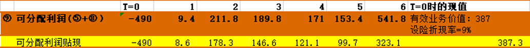 根据上述假设计算的可分配利润贴现值,即有效业务价值为387.35元。