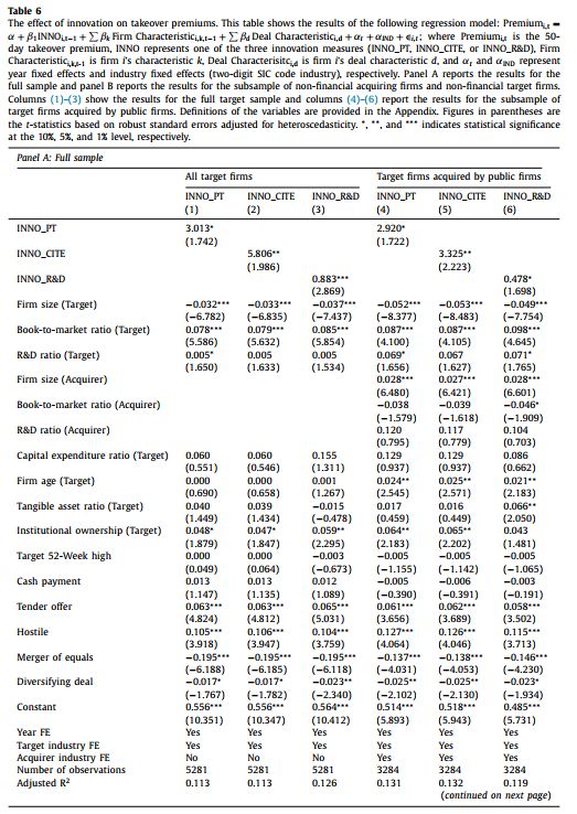 1.Szu-Yin Wu, Kee H. Chung.Corporate innovation, likelihood to beacquired, and takeover premiums[J]. Journal ofBanking&Finance,2019,108,105634.