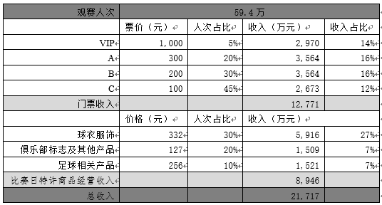 2、比赛日特许商品经营收入: