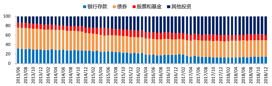 三是相比发达国家市场,我国保险资金配置股票占比较高,较易受到市场波动的冲击。2013年至2016年,我国险资配置股票占比均高于10%。2018年,保险资金配置股票和证券投资基金规模占比达到11.71%。对比发达国家市场,2014年至2018年间,美国的保险机构股票配置比例在2%-3%左右;同期日本保险机构股票配置比例在5%-7%之间。保险资金作为长期限资金,践行价值投资理念,尤其偏好有稳定分红的蓝筹股,为负债端输送稳定的收益。但我国保险资金与资本市场较高的关联度,意味着保险资管机构需要进一步提升投研水平,保证资金的安全性。
