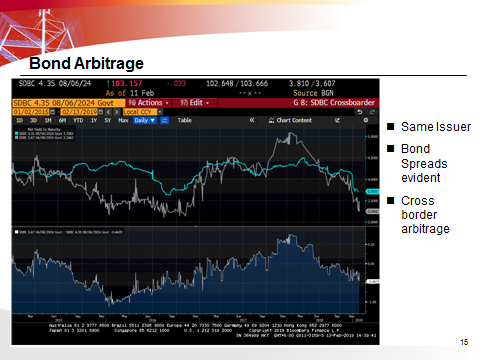 Some Bond Arbitrage ideas, the same bond Issuer showing very evident spreads, this is a very clear cross border arbitrage.