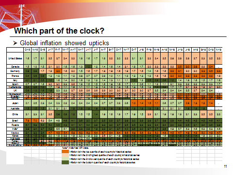 The investment clock helps with understanding the progression of the economic cycle, as well as about preferable asset allocation for each relative phase. By theory, there should always be a safe spot.