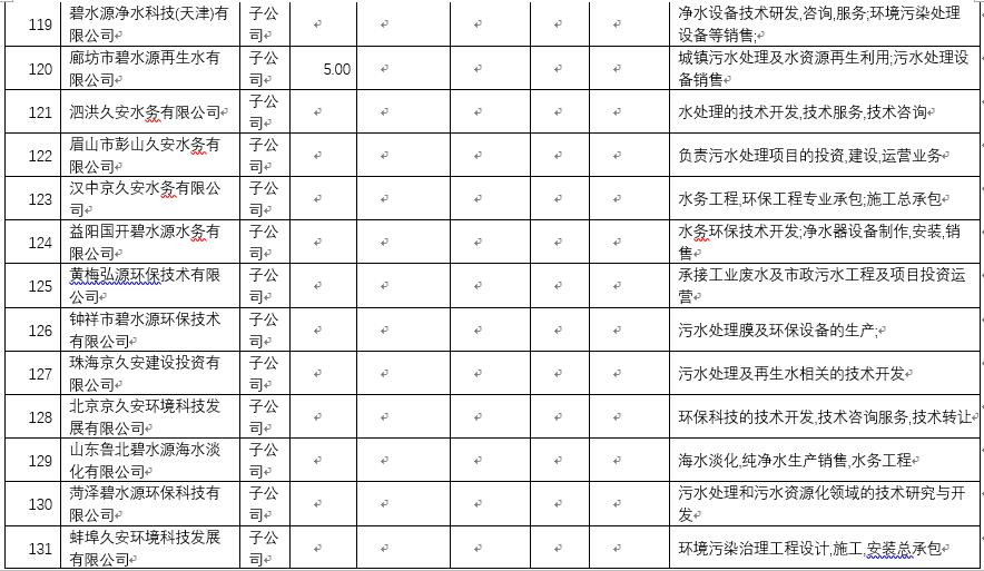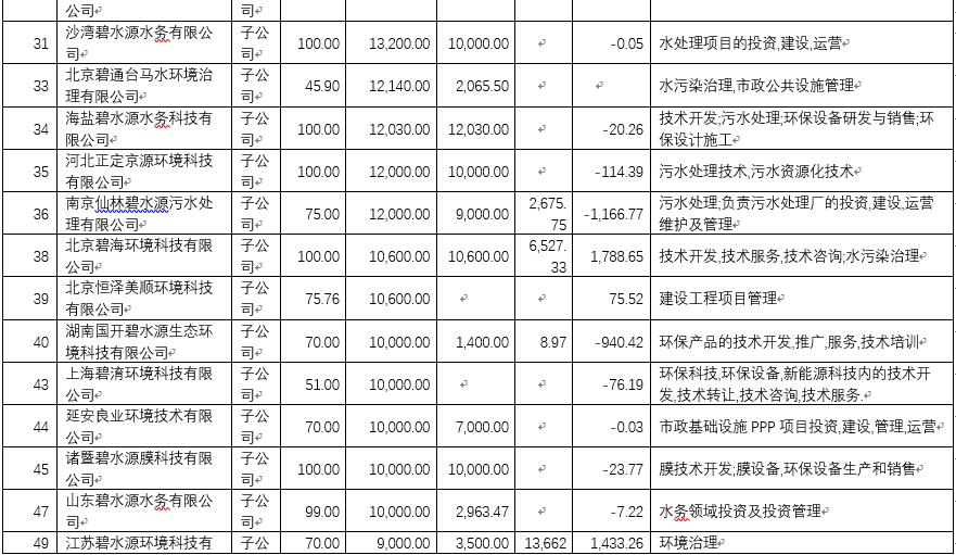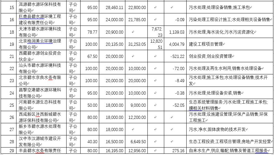 截止2016年12月31日,碧水源主要联营企业(参股比例平均约40%)共32家,例如: