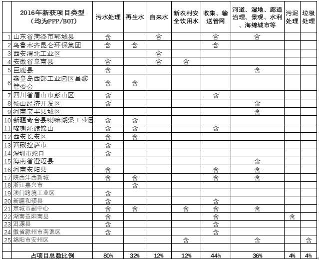 根据公开信息统计,碧水源2016年新获投资项目合同(含框架协议)总金额约300亿元,业务内容涵盖多样化,具体见表4: