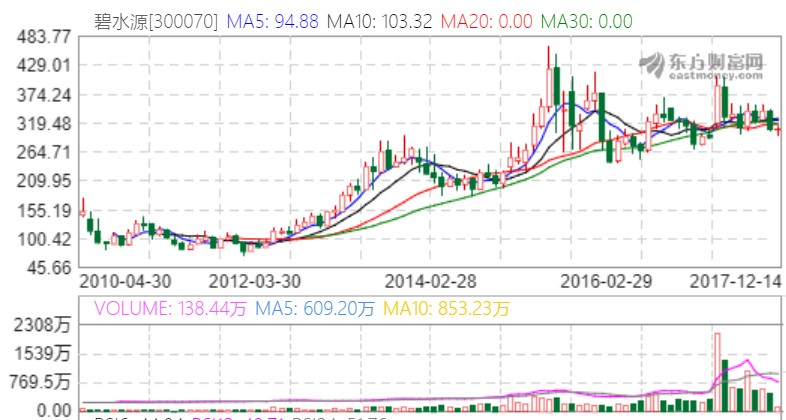 碧水源2010年4月21日在深圳证券交易所创业板挂牌上市,股票代码300070。其主营业务为提供以MBR技术为核心的污水处理与资源化整体技术解决方案,包括方案设计、工程设计、电控技术、系统集成技术、系统安装和工程技术调试、运营技术支持,以及项目建成后的托管运营服务等;净水器销售;市政与给排水工程以及BOT、BT业务。