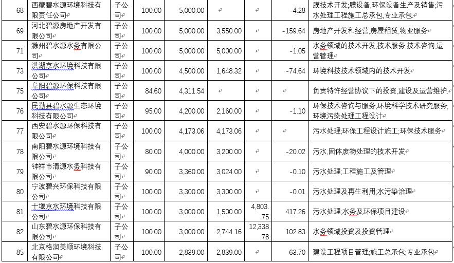 截止2016年底,碧水源提供连带责任担保融资的在保子公司21家,基本覆盖了2016年前设立的大部分联营公司。