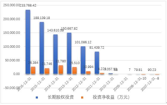 同时,为了了解碧水源投资项目的盈利能力情况,可以通过分析其投资收益表现推断,其投资在其2016年累计长期股权投资23.37亿元,当年投资收益为2600万,投资收益率约为1%。通过分析历史数据显示,其参股公司的10年平均投资回报率仅为1%左右。
