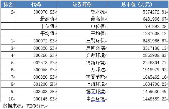 表1:截止2017年12月碧水源同行业公司市值表(数据来源:WIND资讯)