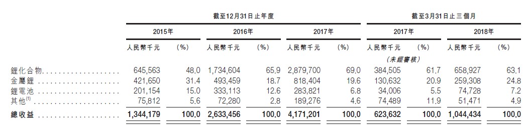 2015-2017年收入、净利润的复合增长率分别为80%和243%。收入的快速增长主要得益于锂化合物价格的增长以及公司产能的释放。净利润的增长主要得益于1)毛利率的增长,产品价格的增长带动毛利率的增长;2)控费能力有所提高,公司三费费率由10%下降到6%,但2018年因港股IPO,管理费用增幅较大。