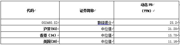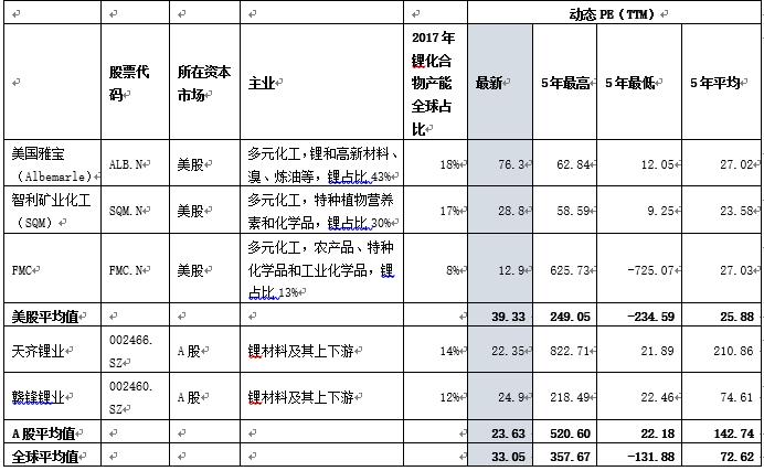 2、细分市场(锂资源/锂材料行业)的估值对比