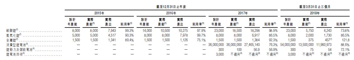 现有产能:截至2017年底,公司设计产能包括2.3万吨碳酸锂、0.8万吨氢氧化锂、0.15万吨金属锂,折合成合计为3.9万吨的碳酸锂当量产能。2017年实际产量为3.64万吨的碳酸锂当量,综合产能利用率为93.33%。