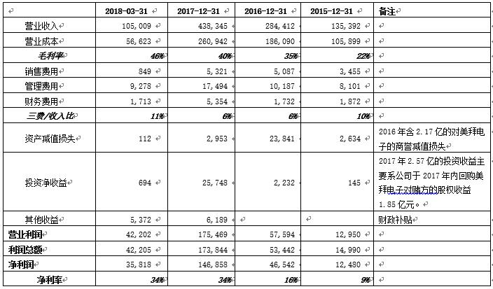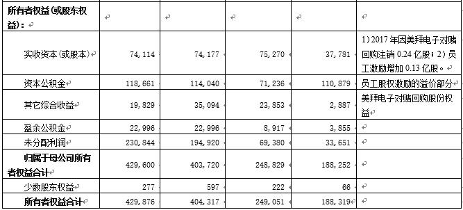 美拜电子事件对公司的近两年利润影响较中性:美拜电子因火灾停业,公司计提了2.17亿元的商誉减值损失,因在对赌期内,公司于2017年回购此前收购时支付的股份,价值1.85亿元。