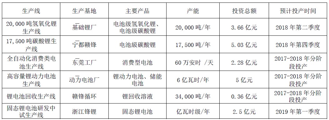 产能扩充计划:2018年将主要新增两条生产线,分别为年产2万吨氢氧化锂生产线和1.75万吨的电池级碳酸锂生产线,前者于18年2月点火,将于8月达产;后者计划于18年Q4投产,2019年初达产。两条生产线全部达产后碳酸锂产能将提升75%至4.05万吨,氢氧化锂产能将提升250%到2.8万吨,折合成合计为7.41万吨碳酸锂当量的产能,产能总体提升104%。此外,公司在建产能还包括动力电池和固态电池等。对应上市公司员工股权激励考核指标之一的产量指标而言(详见下文“历次融资情况”),即2018-2020年分别为5万吨、7万吨、9万吨的碳酸锂当量产量,2018-2019年预测产量可实现性较高,但要达到2020年9万吨的年产量则需要继续进一步扩产,目前未见上市公司额外1.6万吨的在建产能。