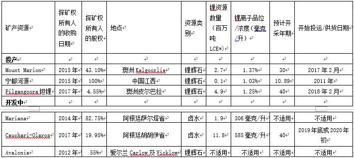 表:公司目前持有的股权的上游锂矿、锂盐湖资源