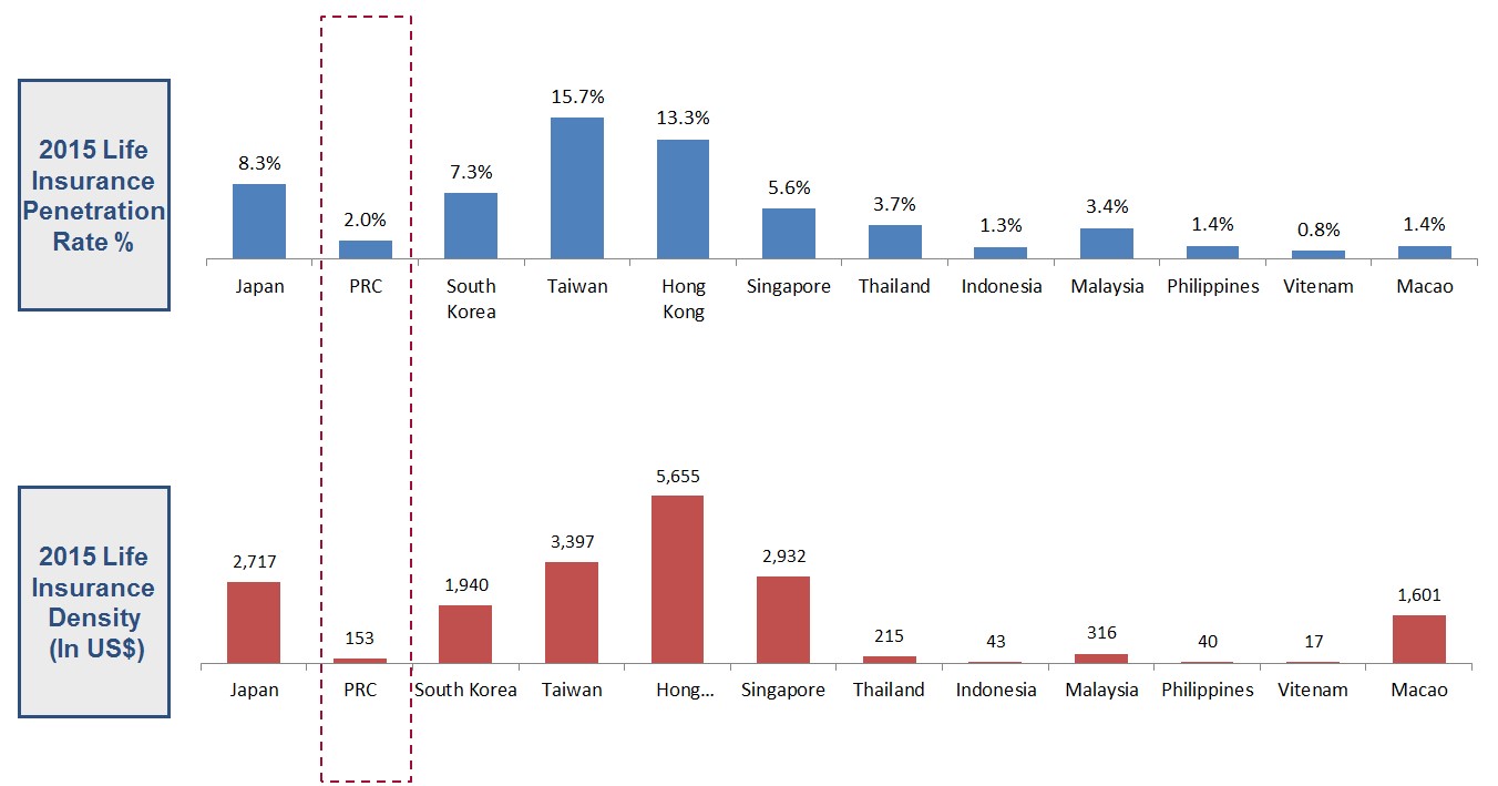Note: Penetration rate % = life insurance premiums / GDP ; Density = life insurance premiums / capita