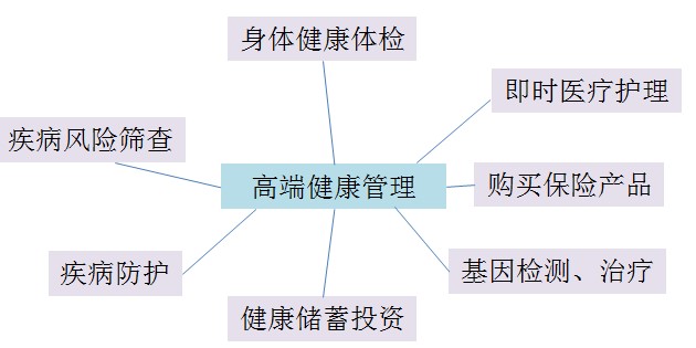2. 在高端健康管理领域,健康是从体检开始的,所以高端健康管理的第一步是高端体检。通过互联网+人工智能(AI)让体检更加智能,提高健康人的体检体验。传统体检的问题和弊端明显,首先所有的体检都是套餐形式的,每个人做的项目差不多,缺少标准的数据解读及风险预告,不够个性化和精准;其次,体检报告到手后,体检中心与患者的沟通服务和检后服务非常有限;再次,体检档案缺少数字化的存档机制;公司购买的团体体检方面的限制更多,体检结果走形式不走心,体检后爆发恶性疾病的案例时有发生。通过引入人工智能可以通过历次的数据报告分析,再加上家族史,自动推送出应该选择的体检项目,检测完后还会根据体检报告进行疾病风险的评估,推出精准健康的干预方案,让体检整个流程做到精准化、智能化。