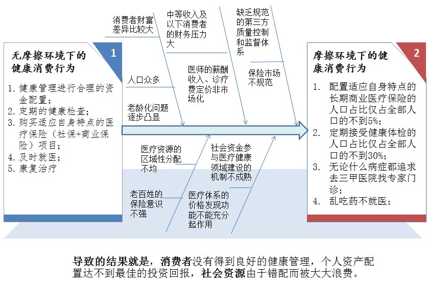 导致的结果就是,消费者没有得到良好的健康管理,个人资产配置达不到最佳的投资回报,社会资源由于错配而被大大浪费,有些消费者因为得不到良好的疾病检测和预防,错过了最佳的就医时间,耽误了病情、影响了治疗效果,或者由于没有购买保险,因病致贫、因病返贫而使得生活质量大大降低。