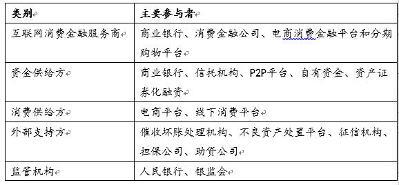 中国互联网消费金融产业主要包括以下参与者: