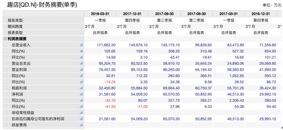 表2.1.3:趣店季度利润表摘要汇总(wind, 2018)