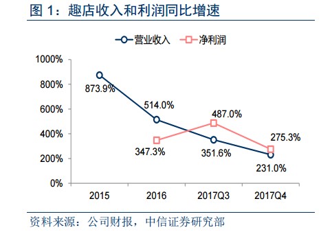 图1.2.1:趣店收入和利润同比增速(中信证券,2018)