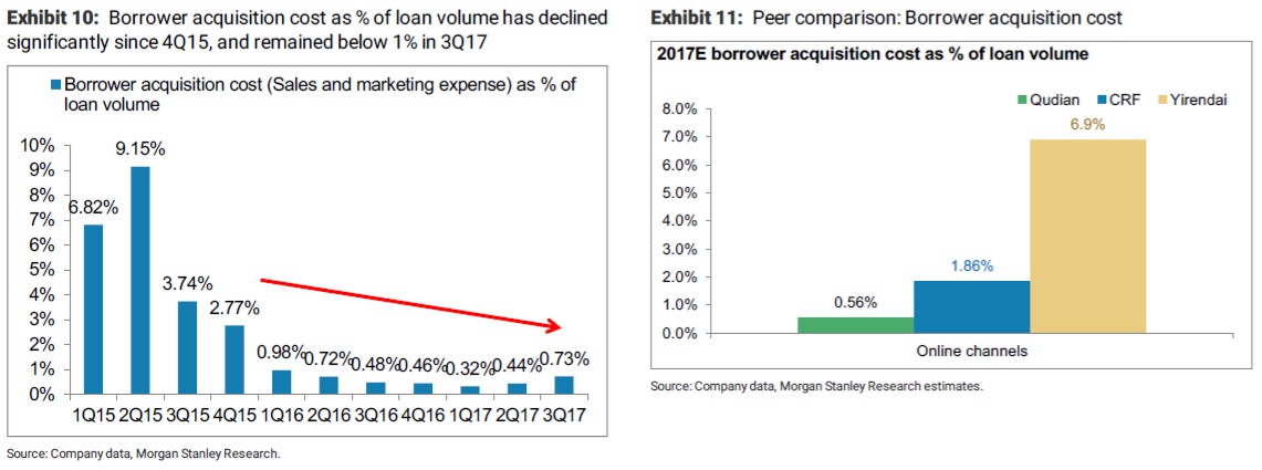 另一个影响收入因素是会计准则的变化。按照ASC606的要求,借款撮合收入在客户支付首笔还款时即可确认,而无需等还款全部完成。因此很多收入确认会提前,在2018年1季度,由于准则变化新增了约1.38亿借款撮合收入。