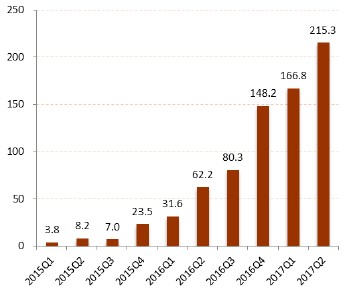 2017年中国互联网消费信贷行业处于高速增长中
